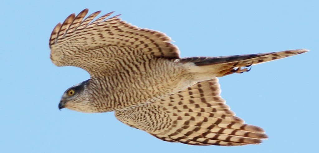 He tenido el privilegio de observar, por primera vez en mi vida, al Accipiter nisus granti, o gavilán, de la familia de los halcones. Es una belleza ver esta ave en vuelo. He tenido la ocasión en estos días de mitad de abril verle volar sobre el barranco de Tirajana muy cerca de Guriete. Especie en extremo peligro de extinción.