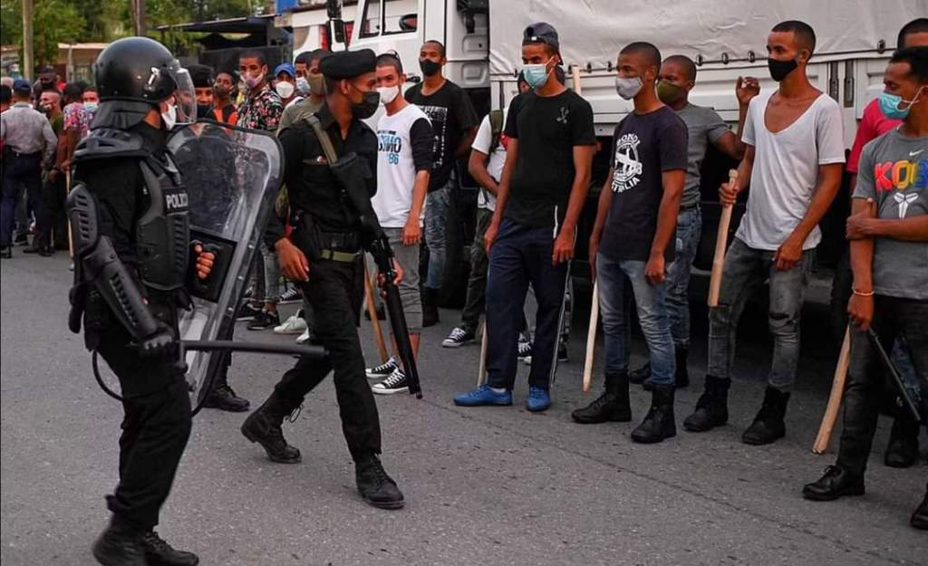 Por otro lado tenemos el régimen Comunista autoritario que sobrevive al Castrismo a base de eslóganes «revolucionarios» y de la ensoñación del «guerrillero libertario», mantenido por una izquierda internacional, Latinoamericana y Europea incapaz de un atisbo de crítica y reflexión en torno a un régimen autoritario que empezó como una revolución en la década de los 50 del siglo XX, y que hoy día dicen que siguen en revolución. Haciendo un símil a Camilo Cienfuegos cuando dijo «esta revolución es muy generosa» cuando Fidel lo nombró comandante, podríamos decir que «esta revolución tiene la sombra muy alargada». O lo que es lo mismo podríamos seguir hablando de ella otros 60 años más y seguirla llamando revolución? . Pero, podríamos preguntarnos ¿ cuando la revolución Cubana se tornó contrarrevolucionaria?. Y aplicando el ideal marxista-Leninista, ¿Cuándo hubo en Cuba colectivizacion, control de los trabajadores de los medios de producción, cuando hubo dictadura del proletariado, cuando hubo revolución Agraria?. O ¿es que hubo una parte de la élite de los vencedores de la revolución de 1959 que tomó el poder y que con su policía política, los CDR (Comités de Defensa de la Revolucion), tomaron el poder político, económico y militar y social, mientras el pueblo Cubano solo refrendada, sin alternativas, sus decisiones?. Estas son muchas preguntas que la Izquierda internacional se debe hacer.