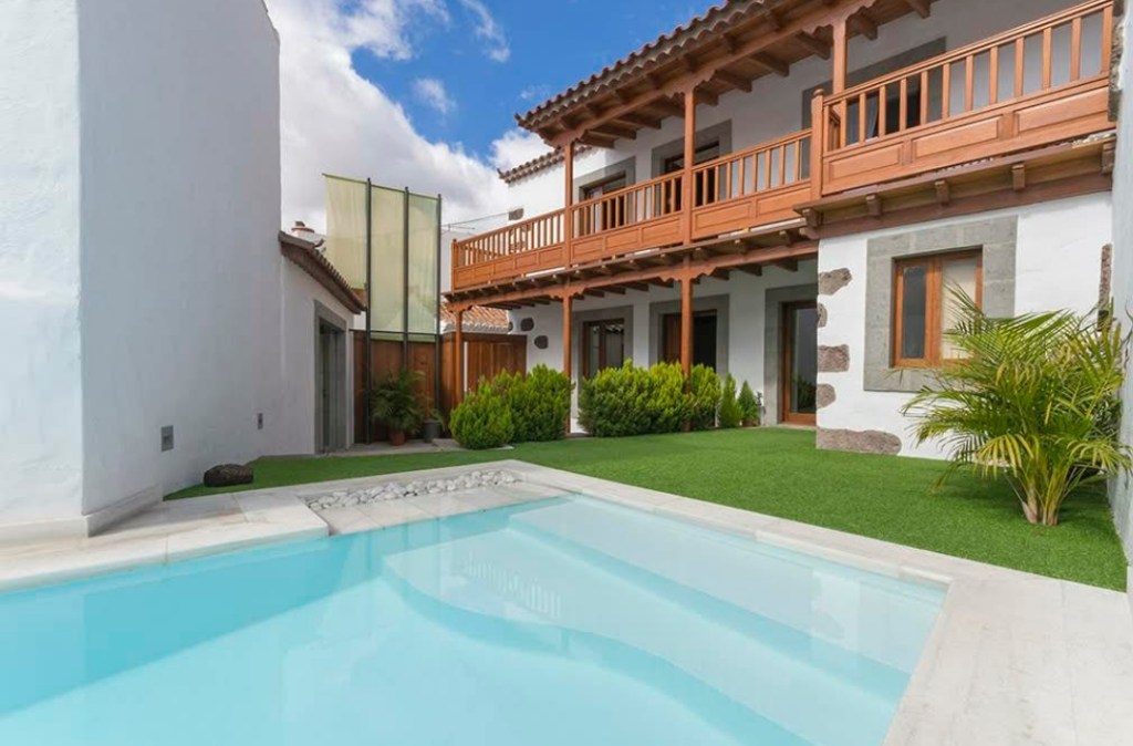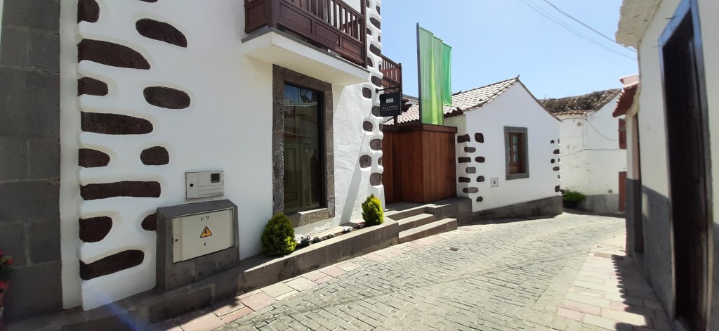 Las casas emblematicas son una calificación por su antigüedad, pero si a esa edificio histórico cultural le cambian toda su estructura, hasta solo mantener algunos muros originales, ¿puede seguir teniendo esa calificación?. La logica dice NO. El ejemplo concreto que exponemos aquí han cambiado el patio central donde habían árboles frutales por una piscina, su puerta de entrada por un portalón de estilo nórdico, ventanas interiores y mobiliario a la última moda, banderolas en su entrada como un hotel spa, una cristalera en lugar de una ventana tradicional que da la calle Leopoldo Matos en Santa Lucía de Tirajana. Techos recubiertos de maderas en lugar de palo o caña, como es tradicional en la zona, y por último, el muro que da al callejón Velez que se ha sustituido por una paredes de cristal traslúcido. ¿Con qué desvergüenza se puede llamar a esto una casa emblematica rural ?. Mucha gente con poder para impedirlo y sin escrupulos ha mirado para otro lado para permitir esta destrucción del patrimonio y venderlo como auténtico. Como mucho ha quedado como un bungalow de lujo…. sin más categoría, cita en la calla Leopoldo Matos
