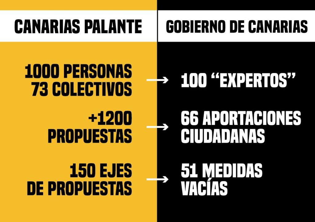Lo que el Gobierno de Canarias no ha sido capaz de hacer, lo está haciendo la sociedad civil de toda las islas, organizándose y echando un pulso a las políticas caciques que pretenden perpetuar las prácticas que nos están llevando al colapso, unas pretensiones claramente reflejadas en las 51 medidas redactadas por “expertos” y políticos.