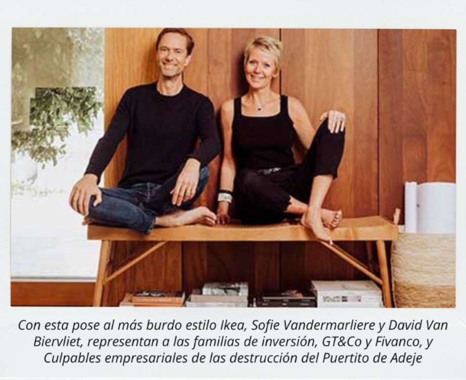 El web inmobiliaria Belga De Rijkste Belgen podemos leer las bondades de estas dos «magnificas» familias Belgas en Tenerife, una imagen limpia, inmaculada y blanqueo, de la destrucción del Puertito de Adeje. Link aquí